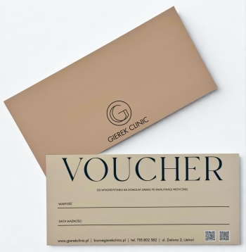• – Voucher dostępny jest w formie eleganckiej karty w kopercie, które można odebrać osobiście w recepcji Gierek Clinic.